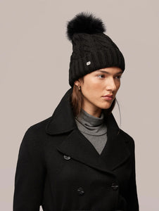 cable knit hat detach fur pom pom-Amalie-BX