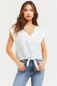 cap slv blue print tencel blouse with vneck tie frt-GLW-23432