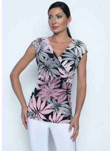 Cap sleeve floral print wrap top in stretch jersey