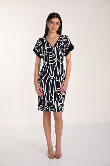 Short sleeve navy/white print dress with zip top detail - 266116