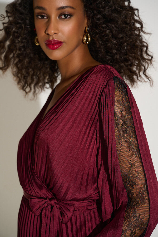 Full sleeve pleated dress with lace sleeve insets - 253775