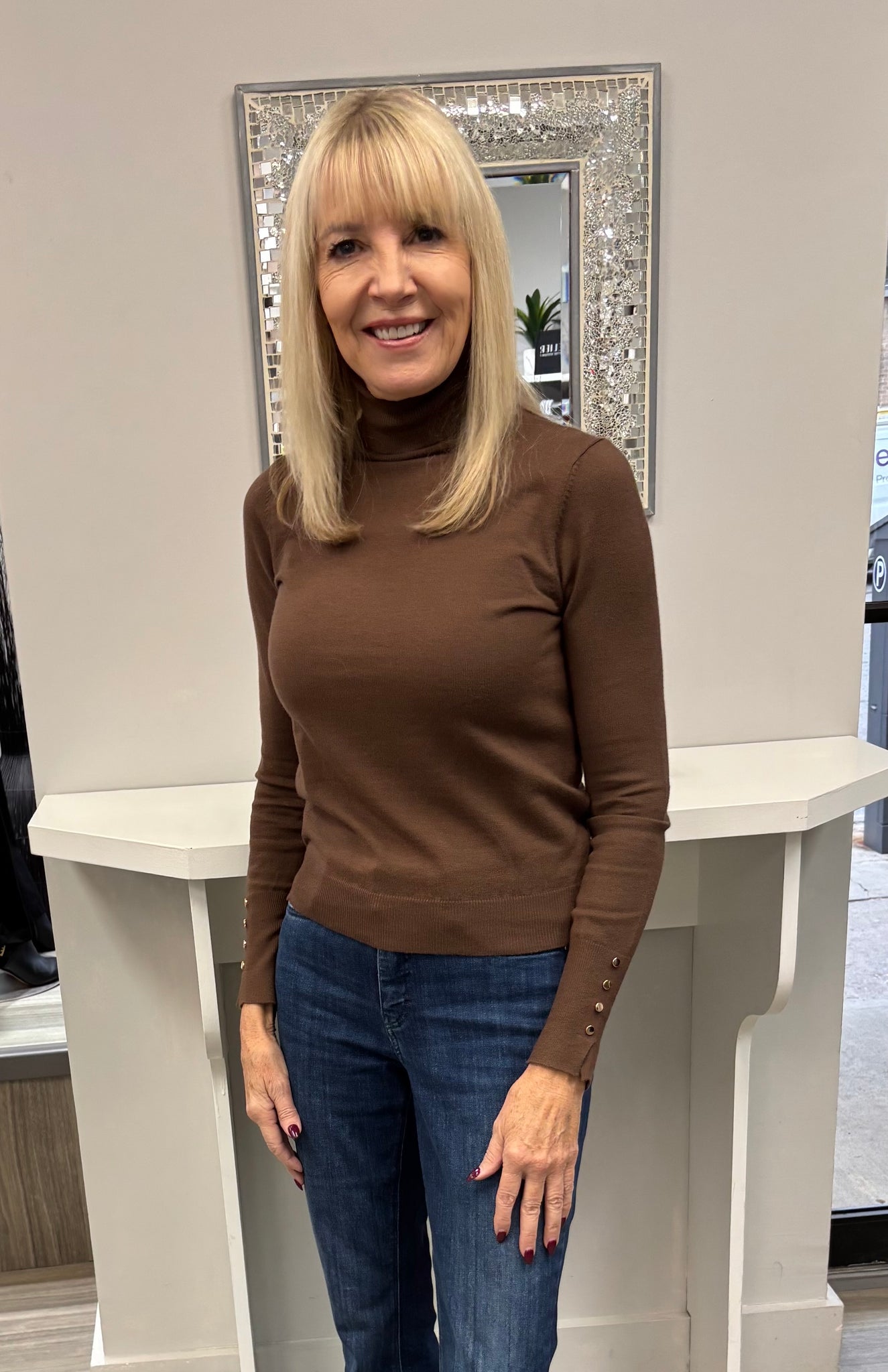 tneck with button cuff-LF90324-brn